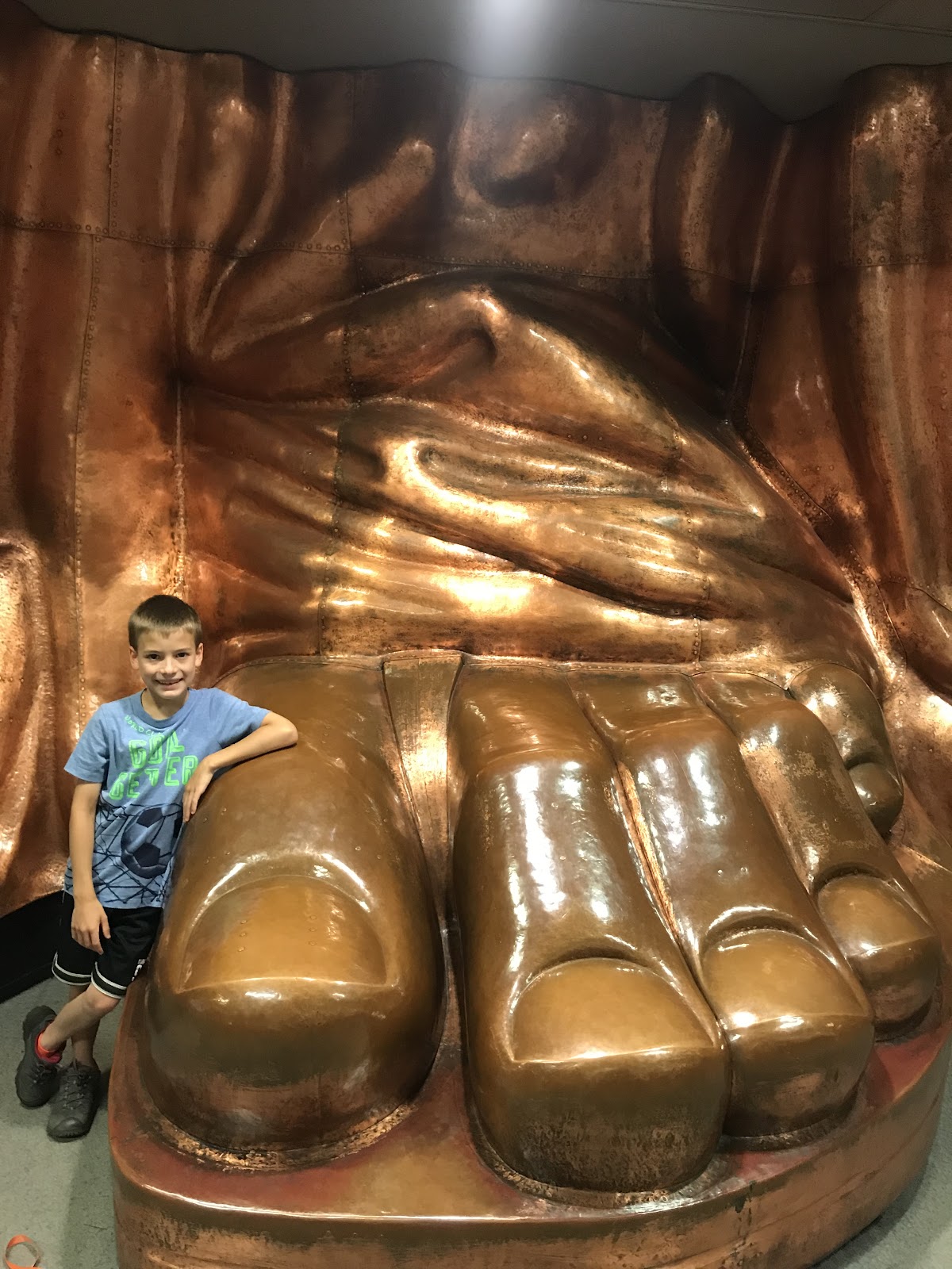 Caleb was fascinated with the true to size replicas of the face and toes.